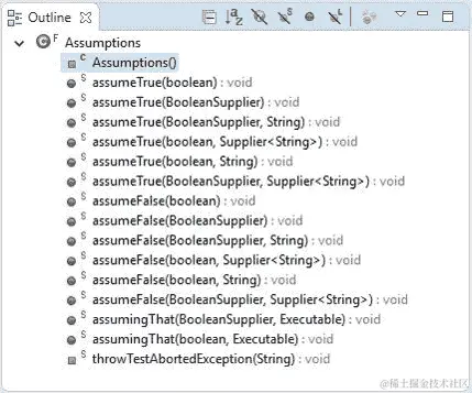Jupiter 提供了丰富的断言集,这些断言是 Assertions 类中的静态方法,用于验证从 SUT 获取的结果是否与某个预期值相对应。我们可以通过多种方式对测试执行施加条件。一方面,我们可以使用 Assumptions 仅在某些条件符合预期时运行测试(或其中的一部分)。