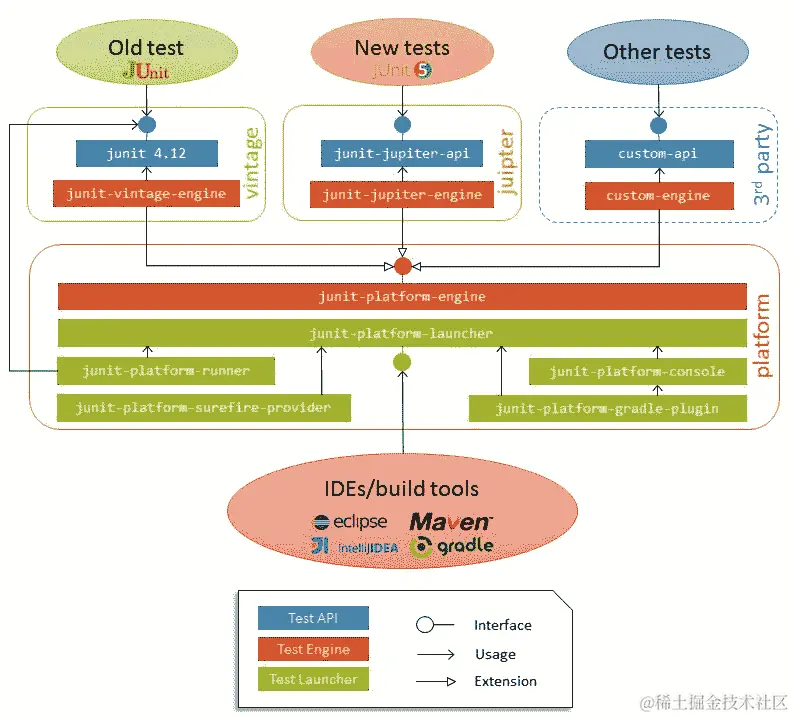 JUnit 5 不支持 JUnit 4 的功能,比如规则和运行器。然而,JUnit 5 通过 JUnit Vintage 测试引擎提供了一个渐进的迁移路径,允许我们在 JUnit 平台上执行传统的测试用例(包括 JUnit 4 和 JUnit 3)。