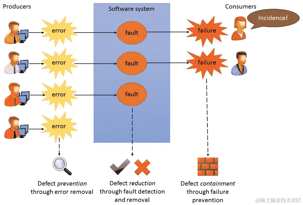 质量保证(QA):通过规划和执行一系列活动来保证项目生命周期中的软件产品和过程满足其指定的要求,从而提供足够的信心,质量被构建到软件中。主要的 QA 活动是验证和验证,但还有其他活动,如软件质量度量、使用质量标准、配置管理、文档管理或专家意见。