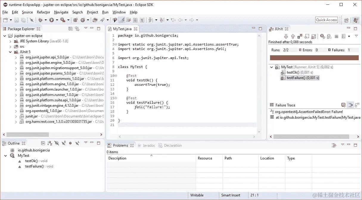 使用 JUnit 4 的 TemporaryFolder 规则执行 Jupiter 测试