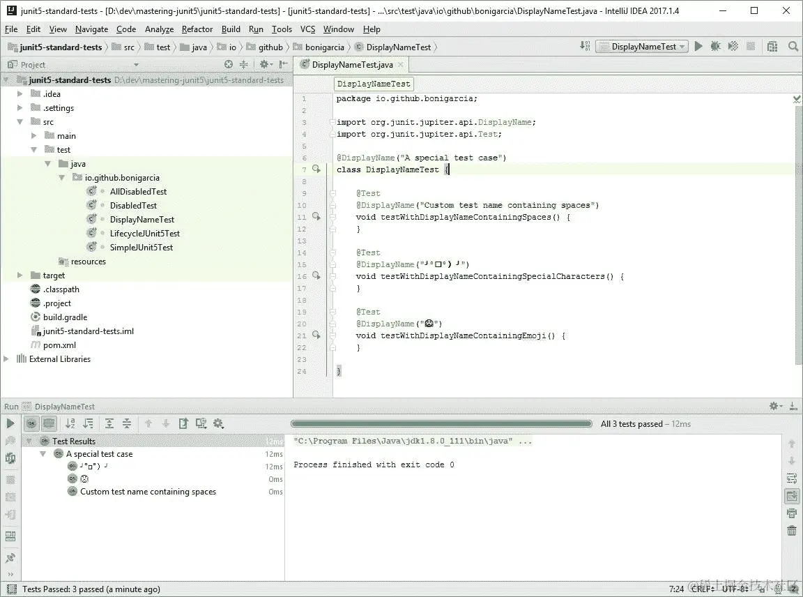 在与*@DisplayName*结合使用的重复测试示例中执行