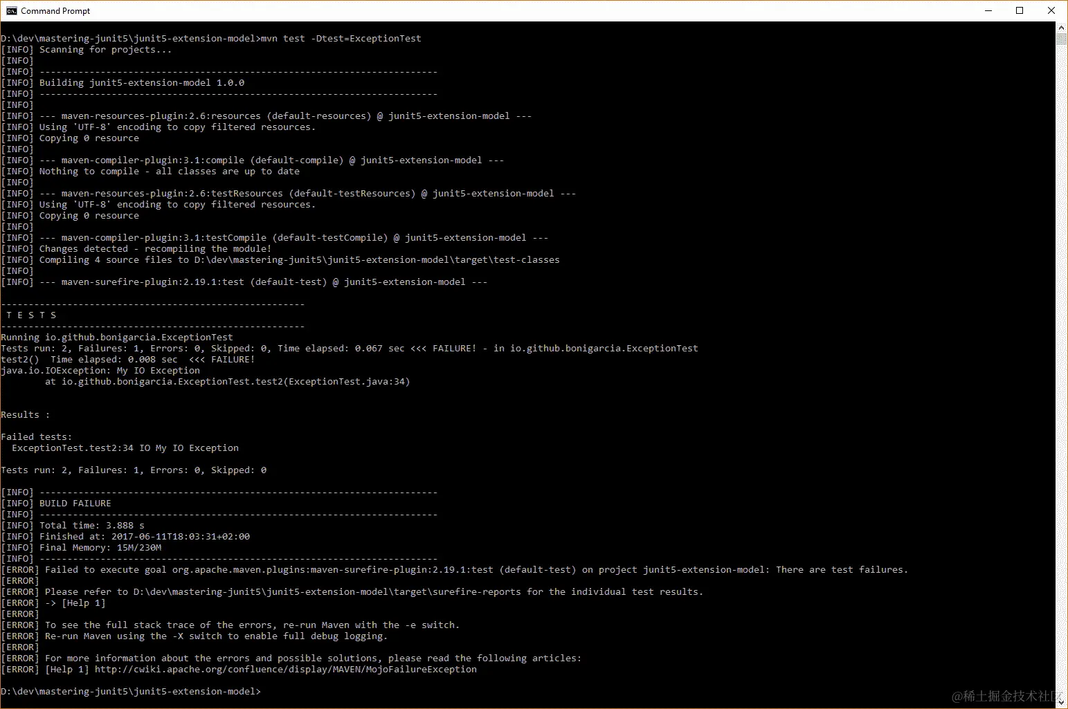 使用 JUnit 4 的 ExpectedException 规则执行 Jupiter 测试