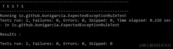 最后,ExpectedException 规则允许我们配置测试以预期在测试逻辑中抛出给定的异常: