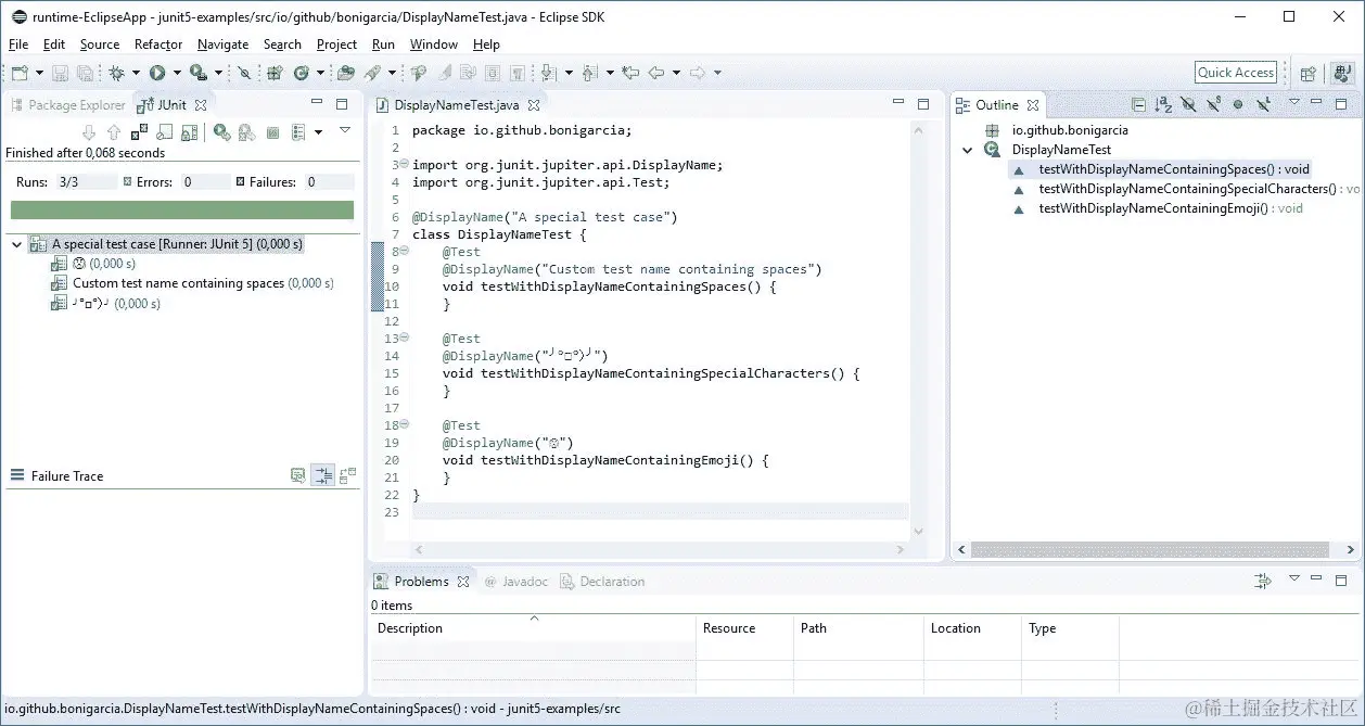 为了在 Jupiter 测试中启用这些规则,测试类应该用类级别的注解 @EnableRuleMigrationSupport 进行注解(位于包 org.junit.jupiter.migrationsupport.rules 中)。让我们看几个例子。首先,以下测试用例在 Jupiter 测试中定义并使用了 TemporaryFolder JUnit 4 规则: