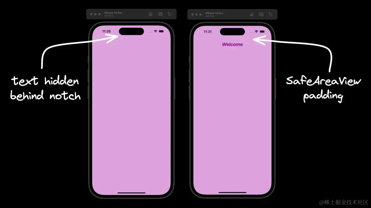 React Native中的SafeAreaView组件确保内容在设备的安全区域边界内呈现。通过使用SafeAreaView,您可以调整UI以避免像刘海或圆角等物理限制,从而在不同的设备设计中提供无缝的用户体验。以下是如何使用SafeAreaView的示例: