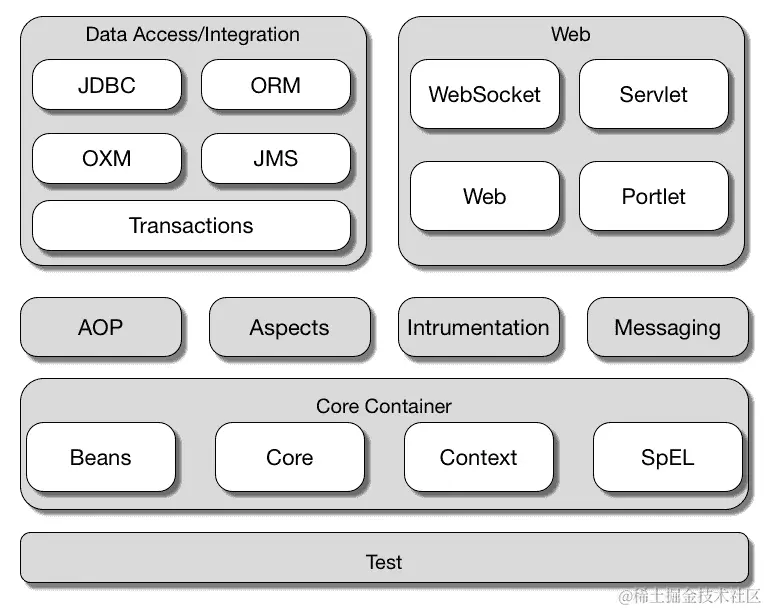Spring 不是整体的。你可以使用它的一部分,或者只使用一些功能。您可以包含一些您需要的 Spring 模块,而忽略其他模块。一些模块依赖于其他模块,Gradle、Maven 或其他一些构建工具处理依赖关系。