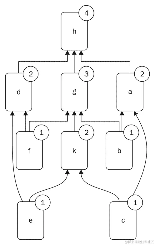反应式编程是一种范式,它更多地关注计算过程中的数据流向,而不是如何计算结果。这个问题最好描述为几个依赖于另一个输出的计算,但是如果几个计算可以独立于另一个执行,那么反应式编程就可能出现。作为一个简单的例子,我们可以使用f1、f2、f3、f4和f5作为简单的计算步骤,通过一些给定的b、c、e和f值来计算h的值: