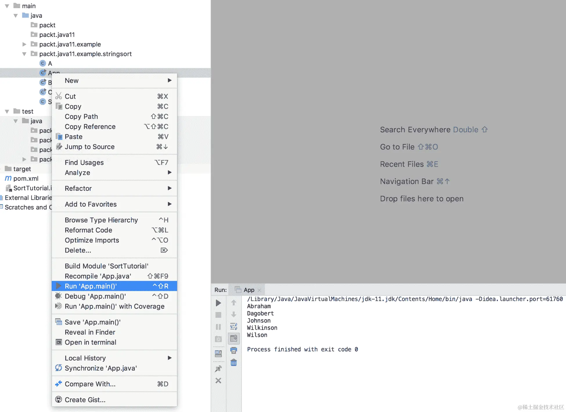 我们将示例中的类命名为App和Sort。这是 Java 示例App和Sort中的约定。这是 Java 中的一个约定,在这个约定中,您必须命名驼峰大小写中的几乎所有内容。