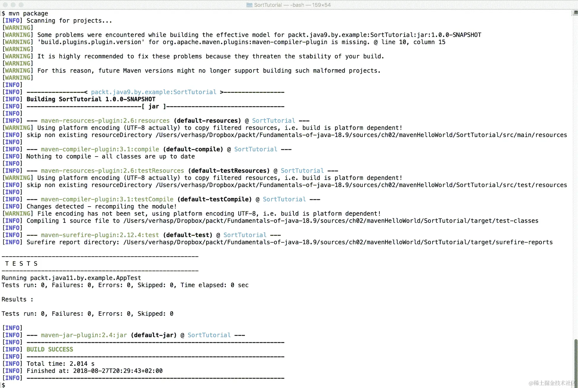 这将编译程序,将结果打包到 JAR 文件中,最后执行以下命令: