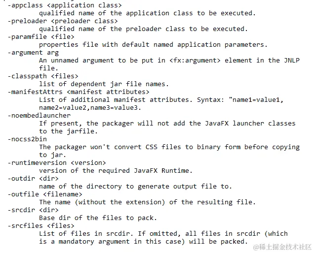 -createjar | 这个命令与其他参数一起使用,创建一个 JAR 归档文件。 |