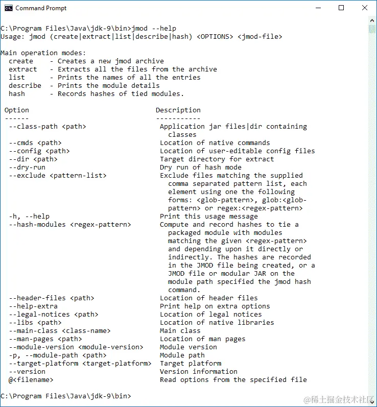 热点虚拟机为jmod和jlink命令行工具实现<options>。