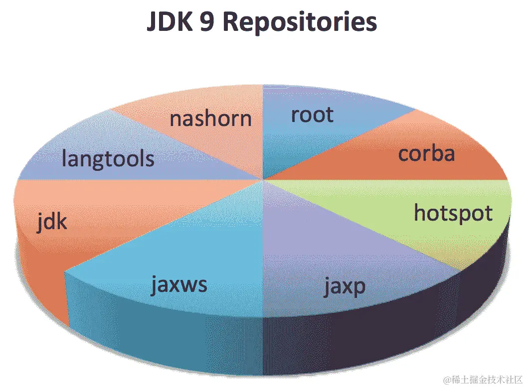 在 Java9 之前的 JDK 构建系统同时生成了 JRE 和 JDK。JRE 是 Java 平台的完整实现。JDK 包括 JRE 以及其他工具和库。Java9 中一个显著的变化是 JRE 子目录不再是 JDK 映像的一部分。进行此更改的部分原因是为了确保两种图像类型(JDK 和 JRE)具有相同的图像结构。有了共同和重组的结构,未来的变革将更有效地结合起来。