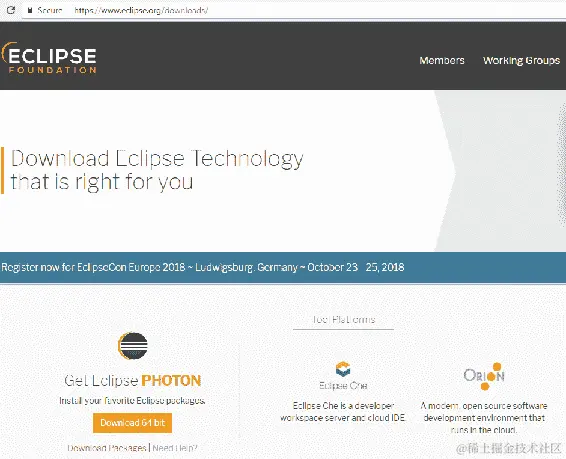 首先,我们下载 Eclipse IDE 编辑器并查看其提供的界面。以下链接将带我们到 Eclipse 的官方网站:www.eclipse.org/downloads/。该网站将看起来像以下屏幕截图所示: