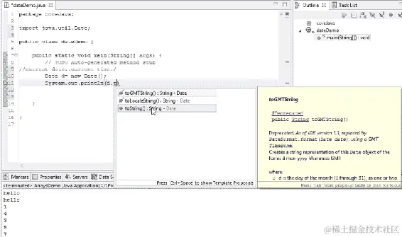 在这里,我们将Date转换为字符串,以便我们可以在输出中直观地看到它。在运行前面的代码时,如截图所示,它打印出以下内容: