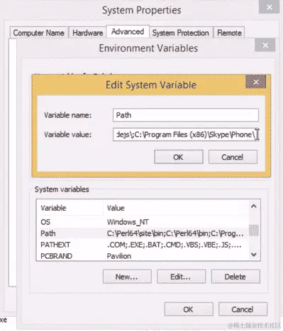 我们复制bin文件夹的位置路径,然后返回到我们的系统属性窗口。在系统变量中,我们会看到一个名为Path的变量。双击它将显示一个提示以编辑系统变量,如下屏幕截图所示: