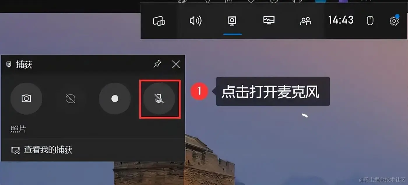 第三步:按快捷键“Win+G”打开“Xbox Game Bar”, 视频录制怎么把声音录进去?此时你只需要进入录制界面,确保选择的录音设备是您刚刚设置的设备,然后打开麦克风。
