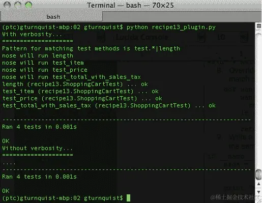最后,我们使用-suite=recipe15_all调用了脚本。这个测试套件模拟了运行一个更完整的测试套件,通常需要更长时间。