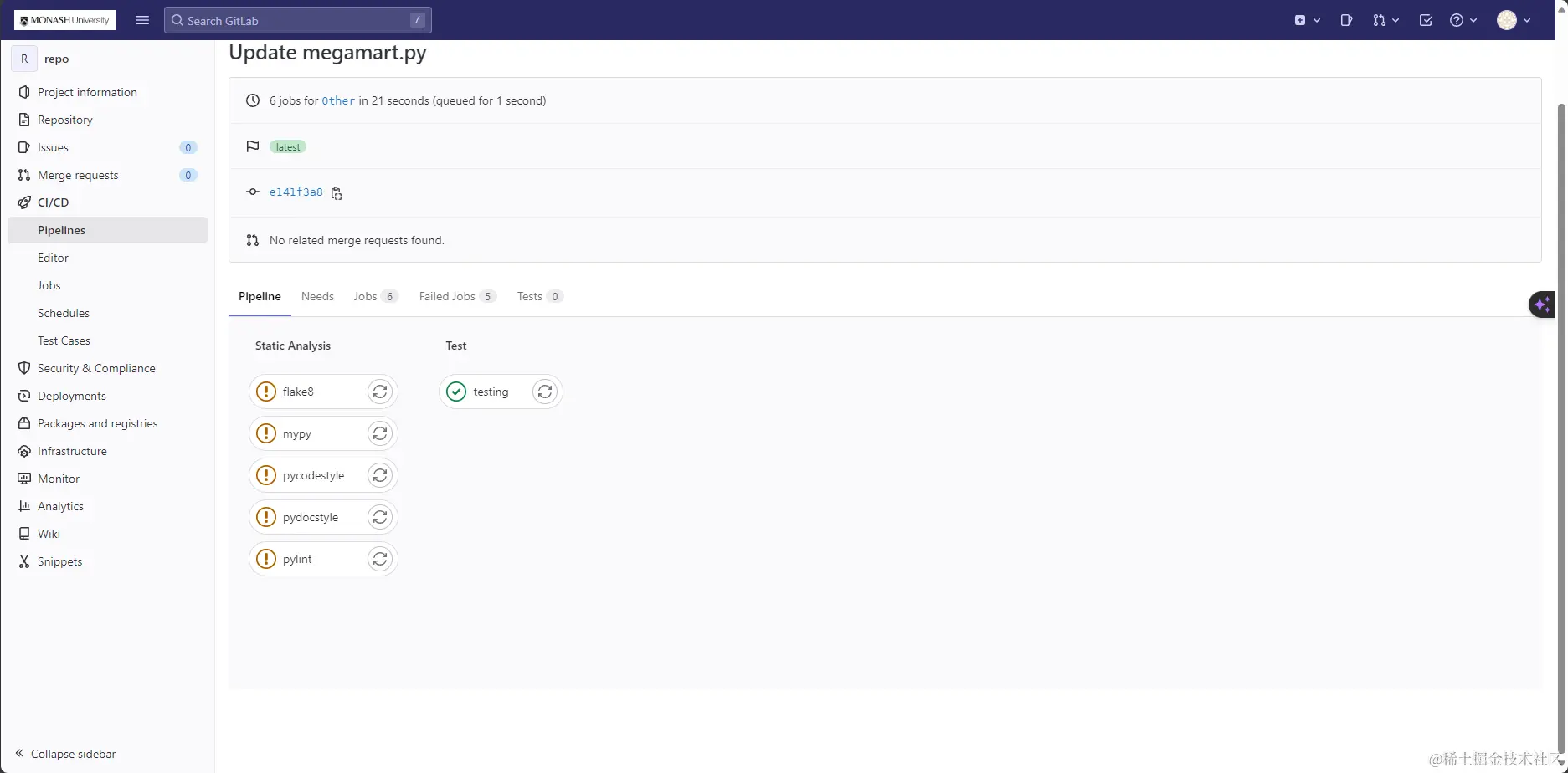 帮助莫纳什大学本科生,处理Python项目的CI/CD部署,使用Python的PyDocStyle、PyLine、Flake8、Mypy进行测试的一个项目,第一次接触Pyton全面测试,莫纳什大学本科生大二能接触到这些看来还是有一定含金量的。