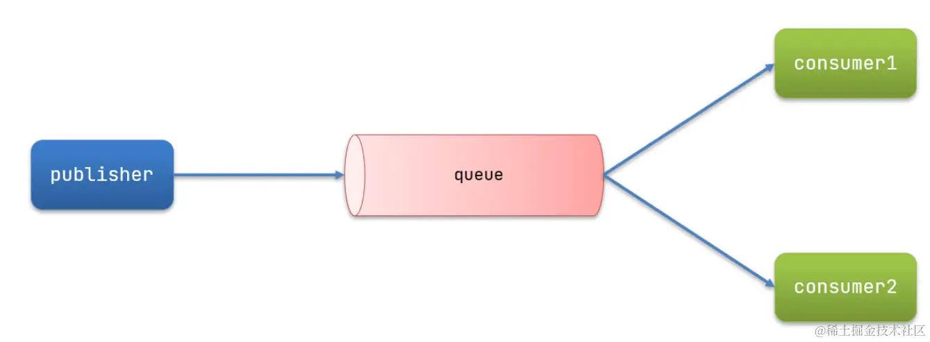 publisher: 消息发布者,将消息发送到队列 queuequeue: 消息队列,负责接收并缓存消息consumer: 订阅队列,处理队列中的消息