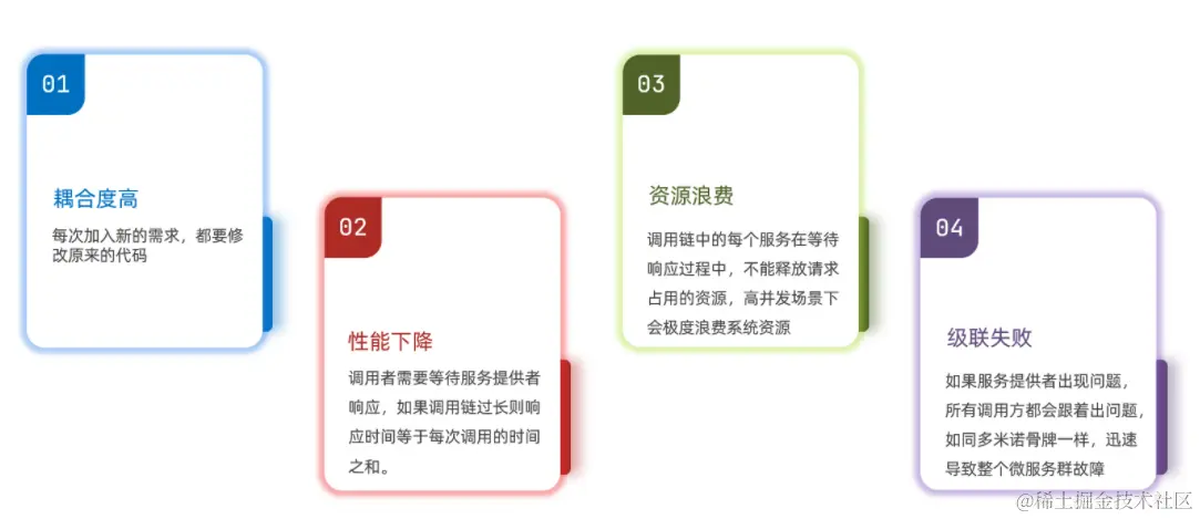 Fegin 服务调用就属于同步方式,虽然调用可以实时获取到结果,但是存在下面的问题: