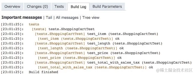 TeamCity 将我们的nose testing作业称为构建作业。这是因为运行测试并不是 TeamCity 唯一用途。相反,它旨在构建软件包,部署到站点,以及我们可能希望它在提交时执行的任何其他操作。这就是为什么 CI 服务器有时被称为构建服务器。但是,如果我们从测试基线开始,我们就可以发现 TeamCity 提供的其他有用功能。
