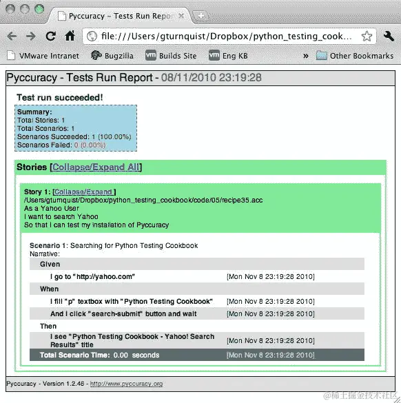 一些开发人员假设验收测试涉及验证 Web 应用程序的前端。实际上,包括 Pyccuracy 在内的几个测试工具都是基于测试 Web 应用程序的唯一前提构建的。从客户是否接受软件的角度来看,这实际上符合客户的接受标准。