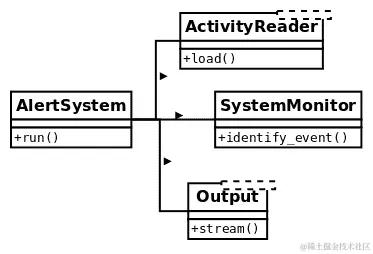 通过使用一个对象来实现相同的行为,该对象将与这些新类的实例进行交互,使用这些对象作为协作者,但是这个想法仍然是每个类封装了一组独立于其他类的特定方法。现在的想法是,对这些类的任何更改都不会影响其他类,它们都有一个明确而具体的含义。如果我们需要改变如何从数据源加载事件,警报系统甚至不知道这些变化,因此我们不需要修改系统监视器上的任何内容(只要合同仍然得到保留),数据目标也没有被修改。
