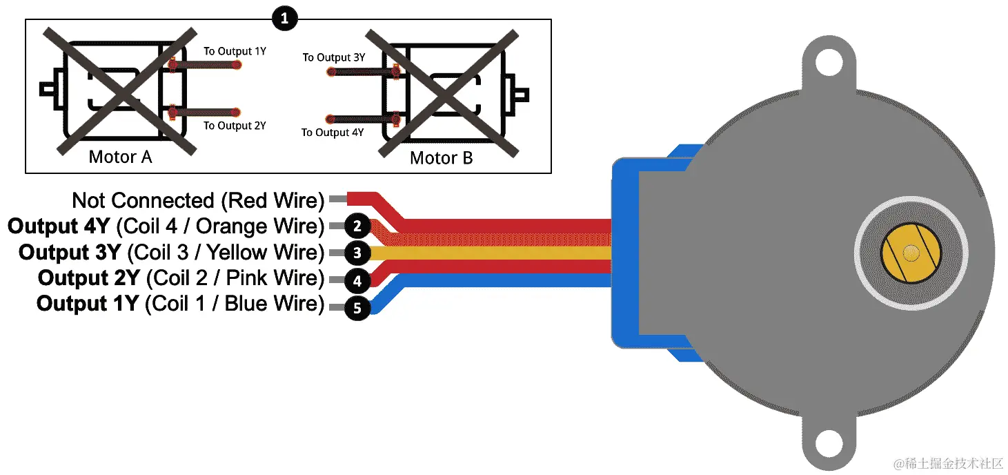1 x 28BYJ-48 步进电机(5 伏特,64 步,1:64 齿轮)。注意:28BYJ-48 有 5 伏特和 12 伏特两种,不同的配置步数和齿轮。参考资料表: