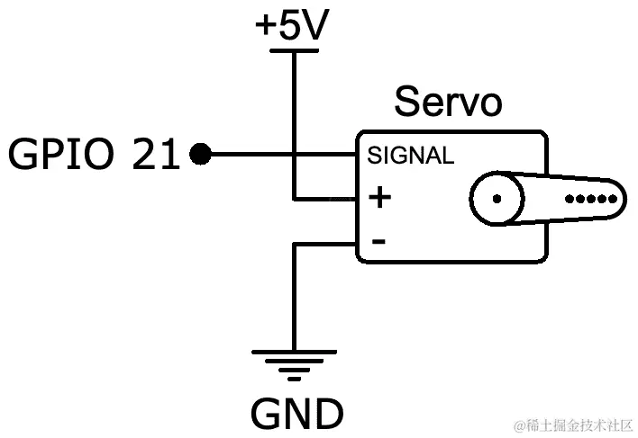 将舵机的信号线连接到树莓派上的 GPIO 21。