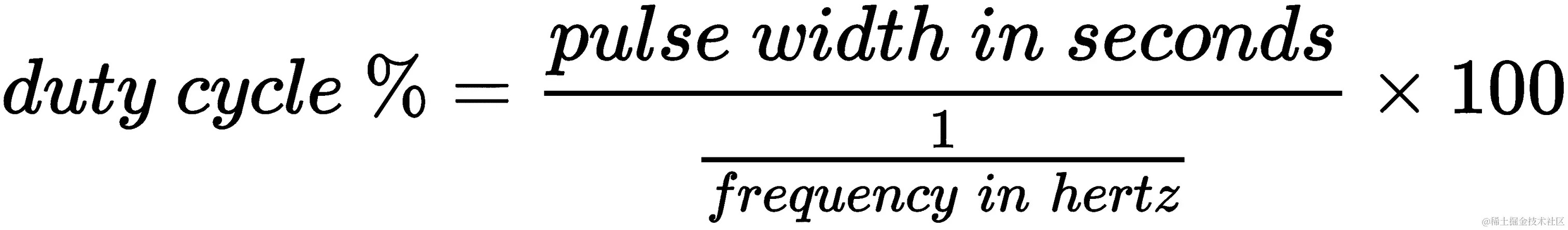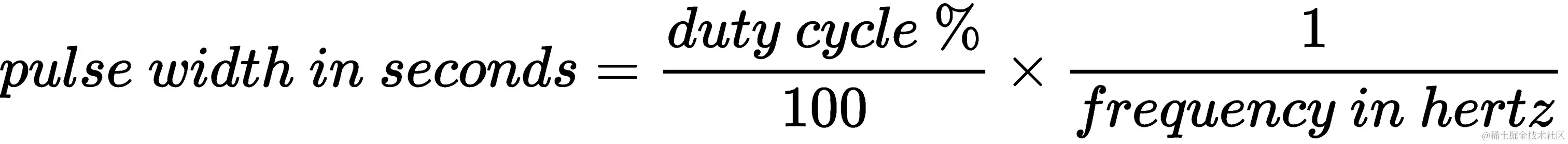 如果你更喜欢一个公式来描述脉冲宽度、频率和占空比的关系,这里有一个: