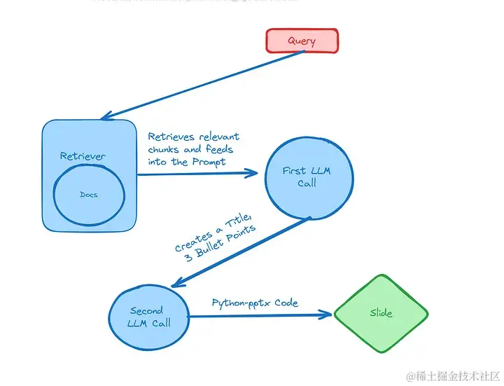 Python 有一个名为 Python-pptx 的库,它允许用户以编程方式创建 PowerPoint 演示文稿。提示大型语言模型使用此库并生成可执行代码,将是第一步。