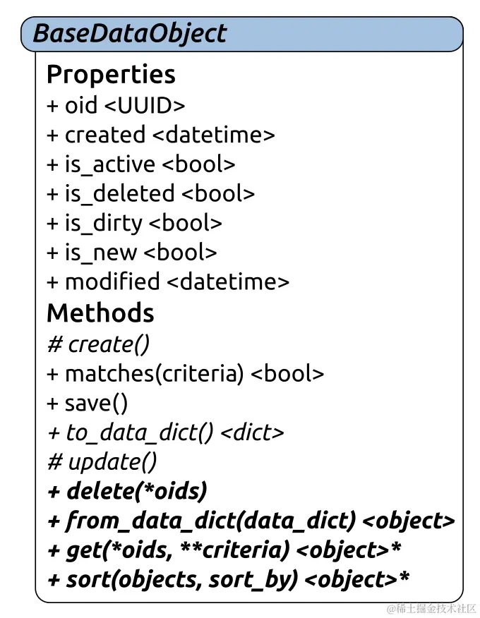 BaseDataObject的实现提供了我们之前确定的所有常见数据访问需求的机制(所有 CRUD 操作):