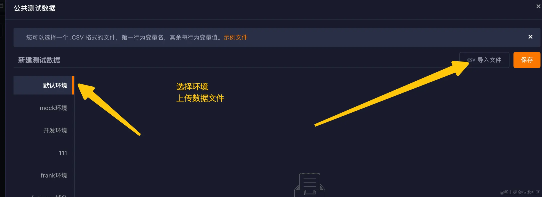 提示:同一个命名的测试数据,可以选择环境上传不同的数据文件,这样切换环境时就可以直接使用对应环境下的测试数据了
