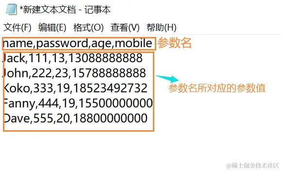 2.准备测试的数据文件,添加想要测试的变量所对应的值。