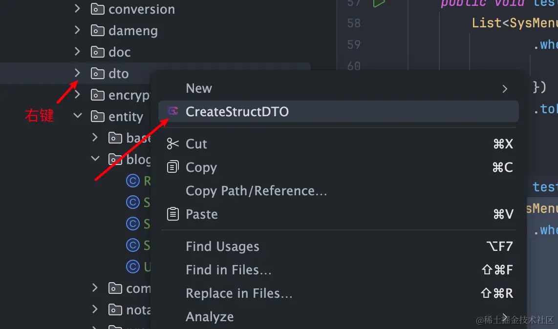 首先通过idea插件EasyQueryAssistant在指定目录创建Struct DTO