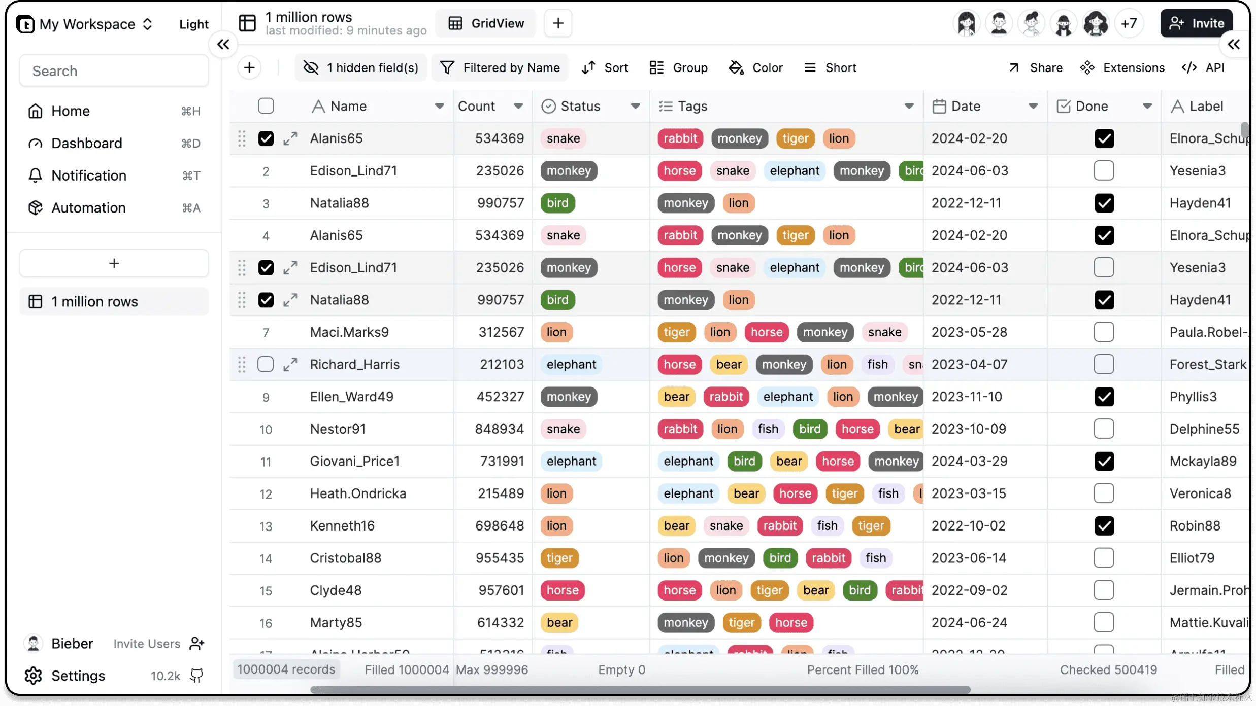 这是一个基于 Postgres 的低代码数据库应用构建平台,它提供了简单、类似电子表格的界面,可轻松创建企业级的数据分析应用,支持海量数据(数百万)、图表、数据排序/过滤/聚合/格式化、分组和数学公式等功能。作为 Airtable 的开源替代品,适用于运营/活动数据分析、客户关系管理、CMS 数据接口等场景。
