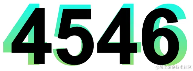 这里,我们让 before 伪元素 和 after 伪元素 两个伪元素进行具体内容的展示,after 伪元素 只展示具体的文字,字号为 100px,而before 伪元素放大一点点后叠加在另外一个伪元素下面,效果如下:
