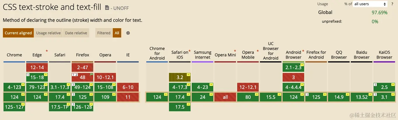 并且,从 CanIUse - text-stroke,到今天,-webkit-text-stroke 的兼容性已经非常好了: