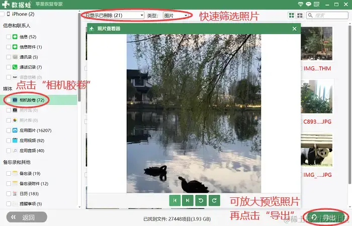 第3步:数据出来后,我们可以查看并导出需要恢复的手机回收站照片。