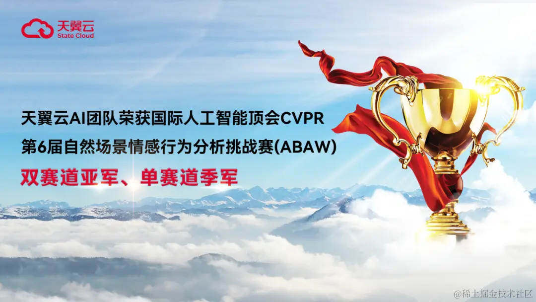 近日,国际人工智能顶会CVPR 2024举办的第6届自然场景情感行为分析挑战赛(6th Workshop and Competition on Affective Behavior Analysis in-the-wild,简称ABAW)公布比赛结果,天翼云AI团队(CtyunAI)在情感识别任务中表现出色,斩获双赛道亚军、单个赛道季军,并受邀在CVPR ABAW研讨会上作论文分享。这是继天翼云在CVPR中荣获多次佳绩后再一次斩获殊荣。