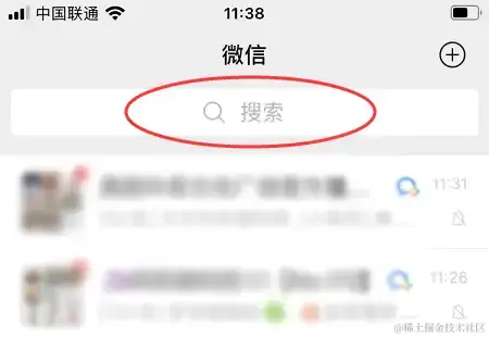 如何解除不显示聊天?打开微信应用,点击**【搜索框】**。