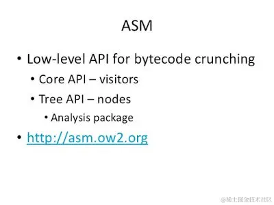 Javassist(JAVA编程ASSISTant)使Java字节码操作非常简单。 它是用于在Java中编辑字节码的类库。 ASM是另一个有用的字节码编辑库。