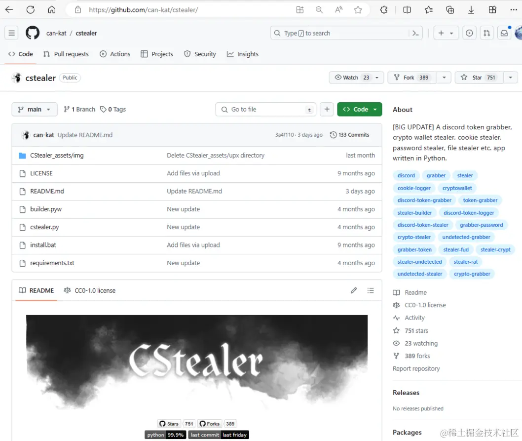 近日(2024年4月25号),悬镜供应链安全情报中心在Pypi官方仓库(pypi.org/)中捕获1起CStea…