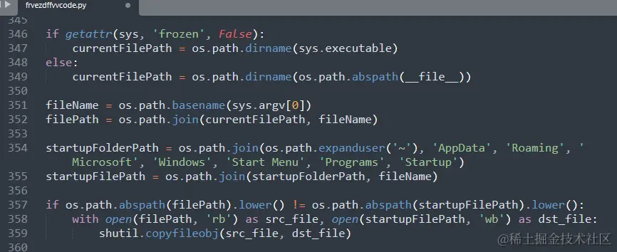 该CStealer后门还会将自身恶意代码拷贝到Windows系统启动目录,尝试通过开机自启动实现投毒持久化。