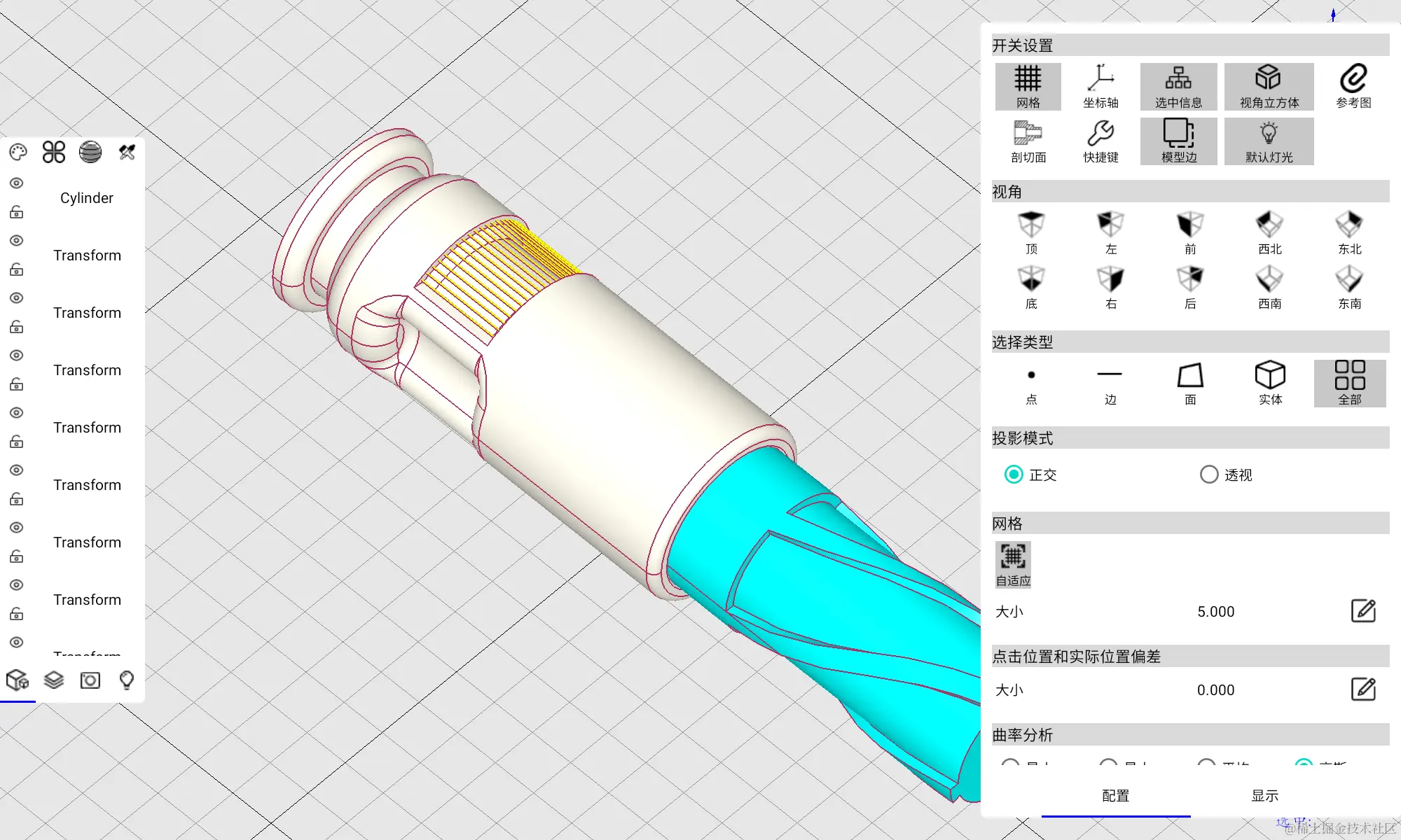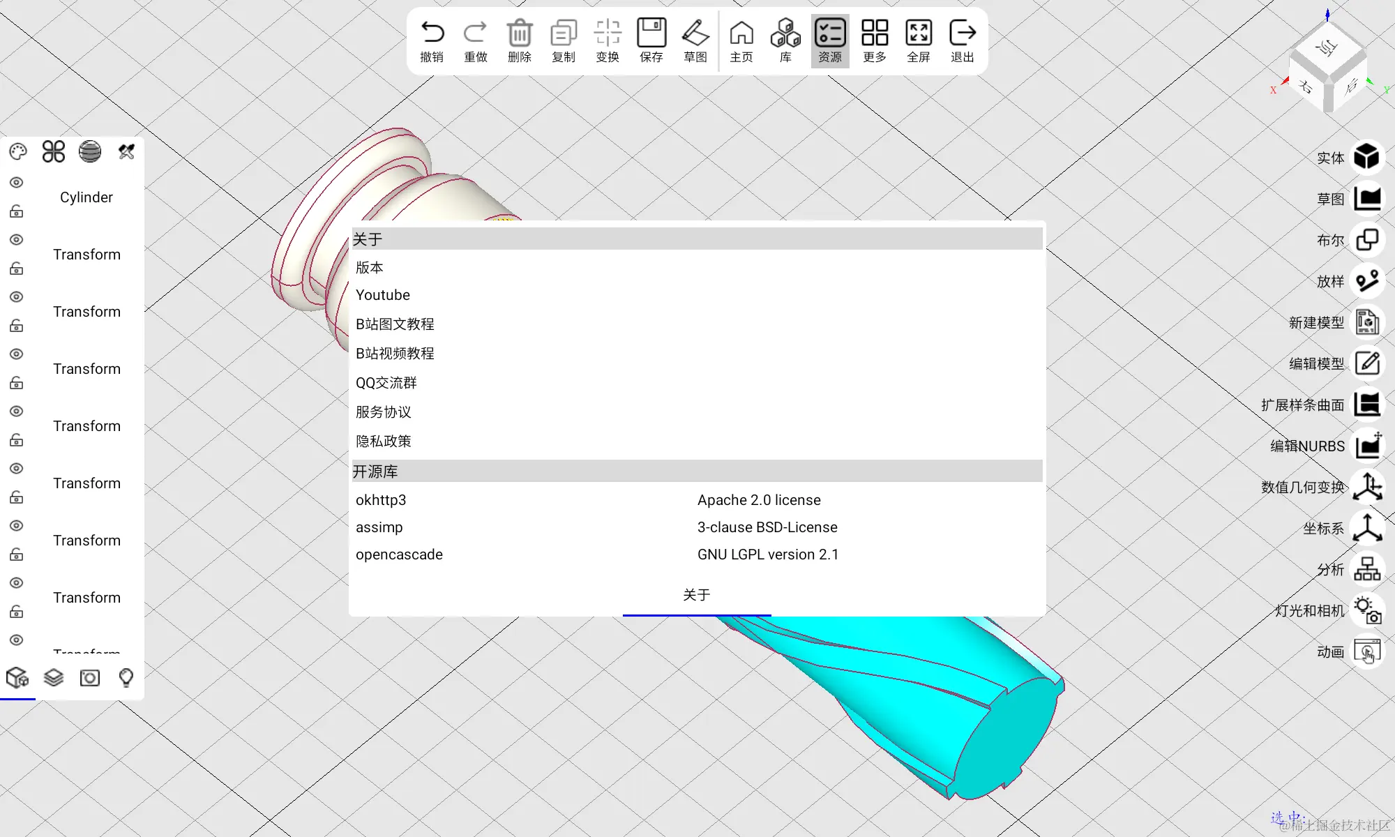 本软件是一个基于OpenCASCADE、android JNI开发的APP。底层用c++实现,UI层用android实现。底层和UI层之间通过JNI接口和json数据格式通信。