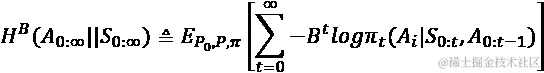 其中折现因子B应用于每个时间步t,期望值为初始状态P[0]的分布和随后状态P的分布,受到策略的影响;