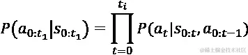 (在序列中先前行动的条件概率)。