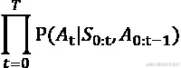 这里,分布与以前相似,但我们增加了基于行动a和状态s使用过渡模型T观察结果o的概率P[T]。 表示指示函数,当