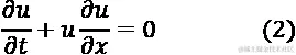 其中 u 是速度,t 是时间,x 是位置坐标,而 是流体的黏性("油腻度")。如果黏性为 0,则简化为无黏方程: