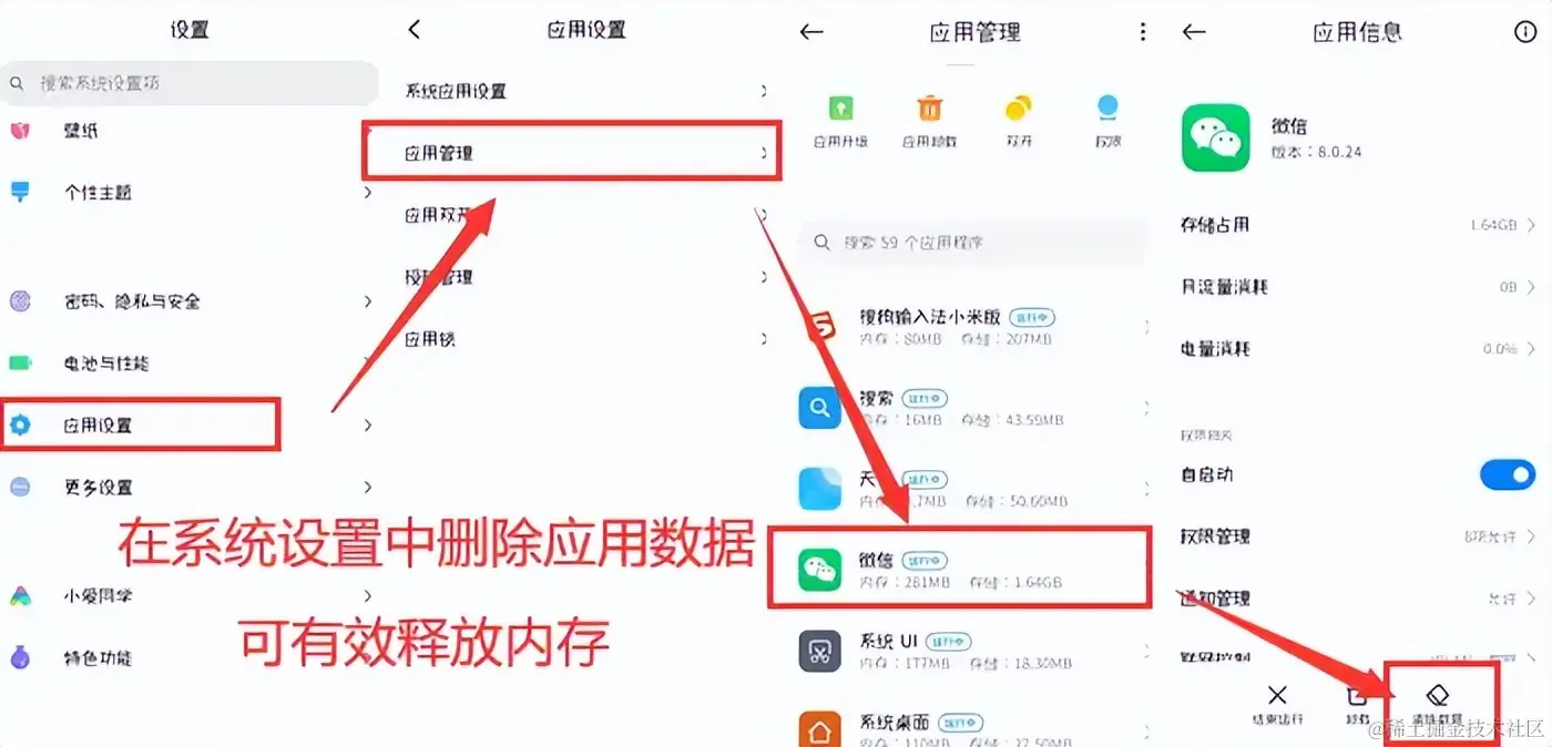 2 .删除不必要的软件数据。我们的手机里有很多系统软件,一般是用不上的,当内存不足时,我们可以选择将这些软件数据清理,释放手机空间。